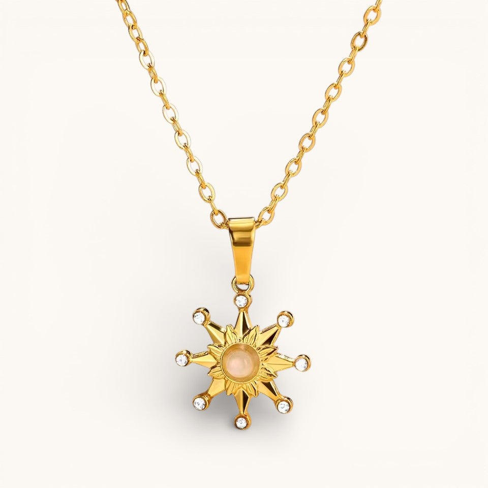 Collar Dorado Con Colgante Estrella Radiante Con Brillos