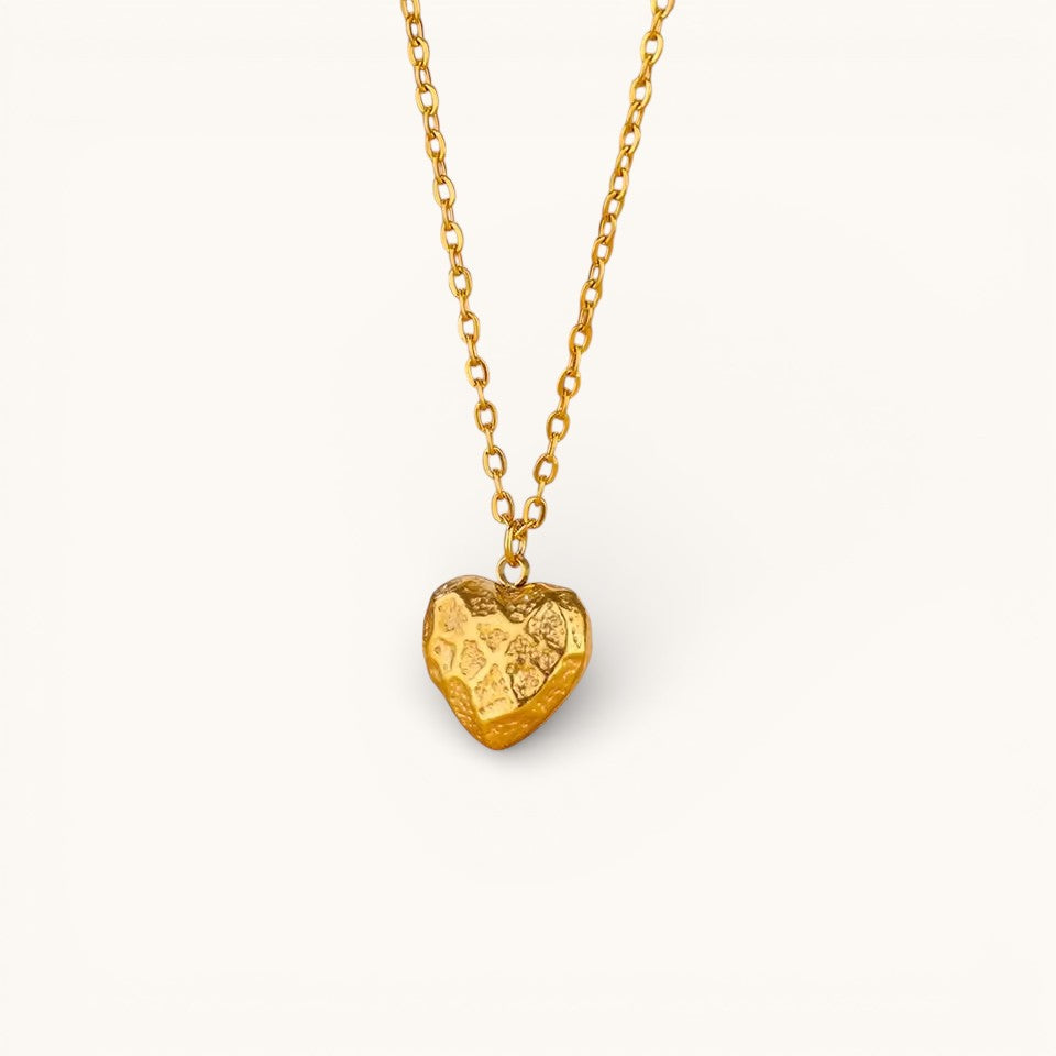 Collar Dorado Con Colgante Corazón Texturizado