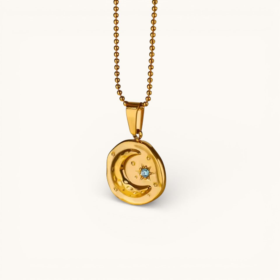 Collar Dorado Con Colgante Luna Y Estrella Brillante