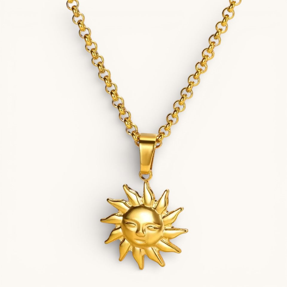 Collar Dorado Con Colgante Sol Rostro