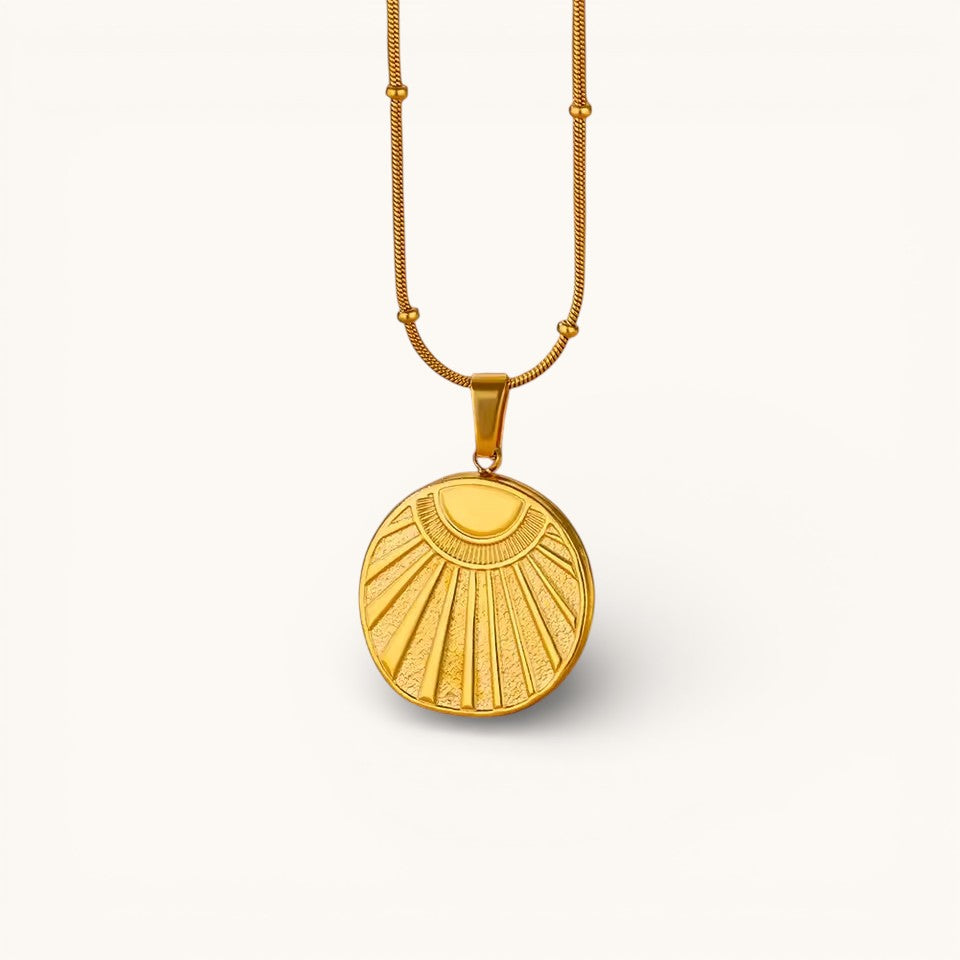 Collar Dorado Con Colgante Redondo Sol Radial