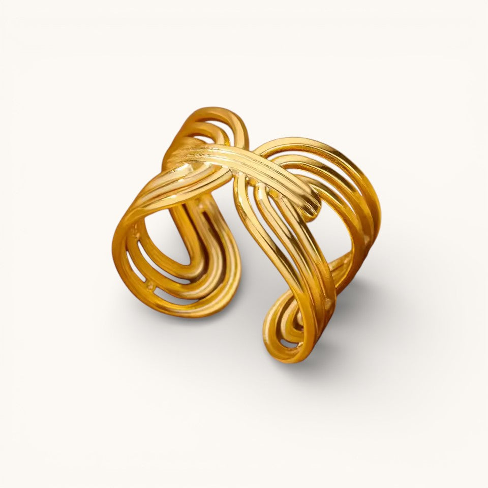 Anillo Ajustable Dorado Mujer Entrelazado Multibanda