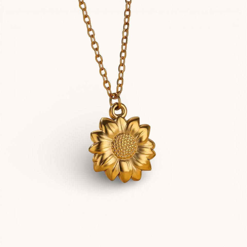 Collar Dorado Con Colgante Flor En Relieve