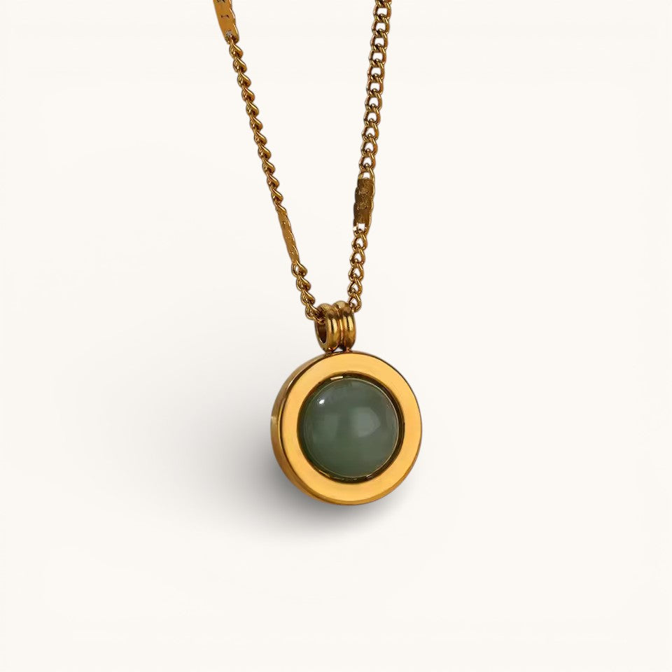 Collar Dorado Con Colgante Circular Piedra Verde